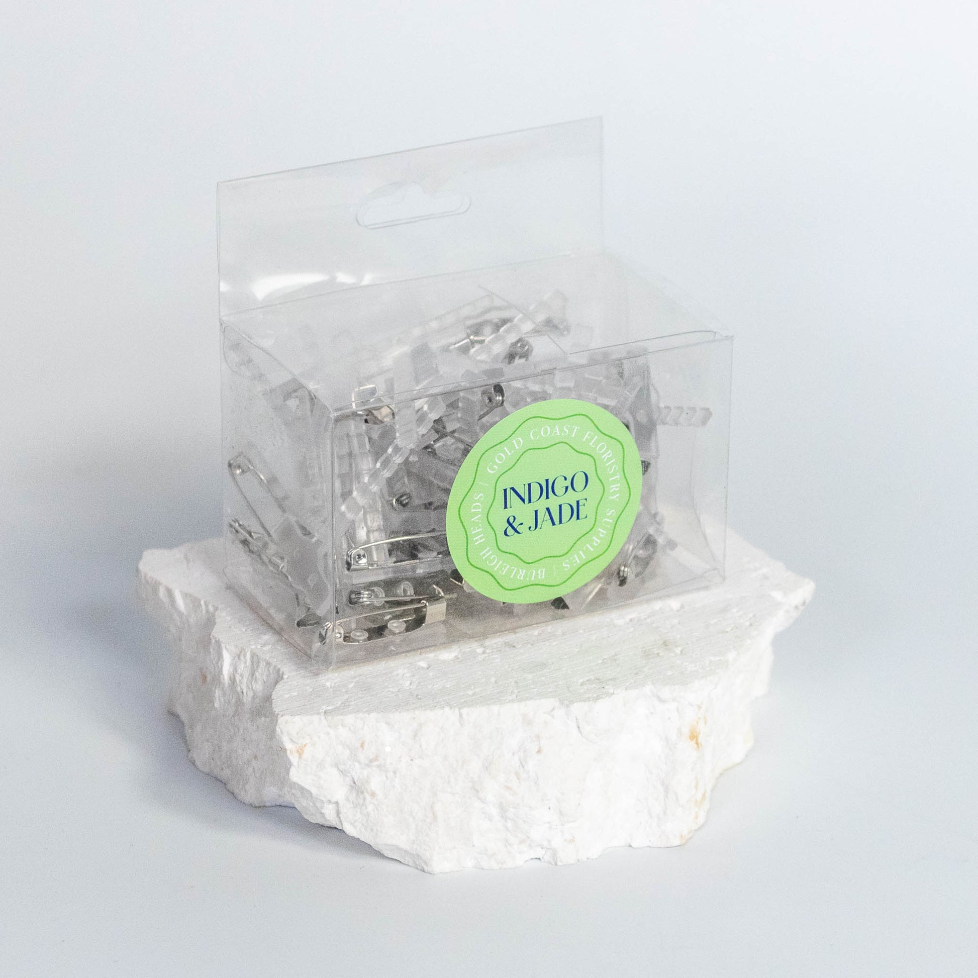 These clips are designed to securely attach boutonnieres or corsages to clothing. It serves as an alternative to traditional pinning methods, providing convenience, ease of use, and a polished appearance.